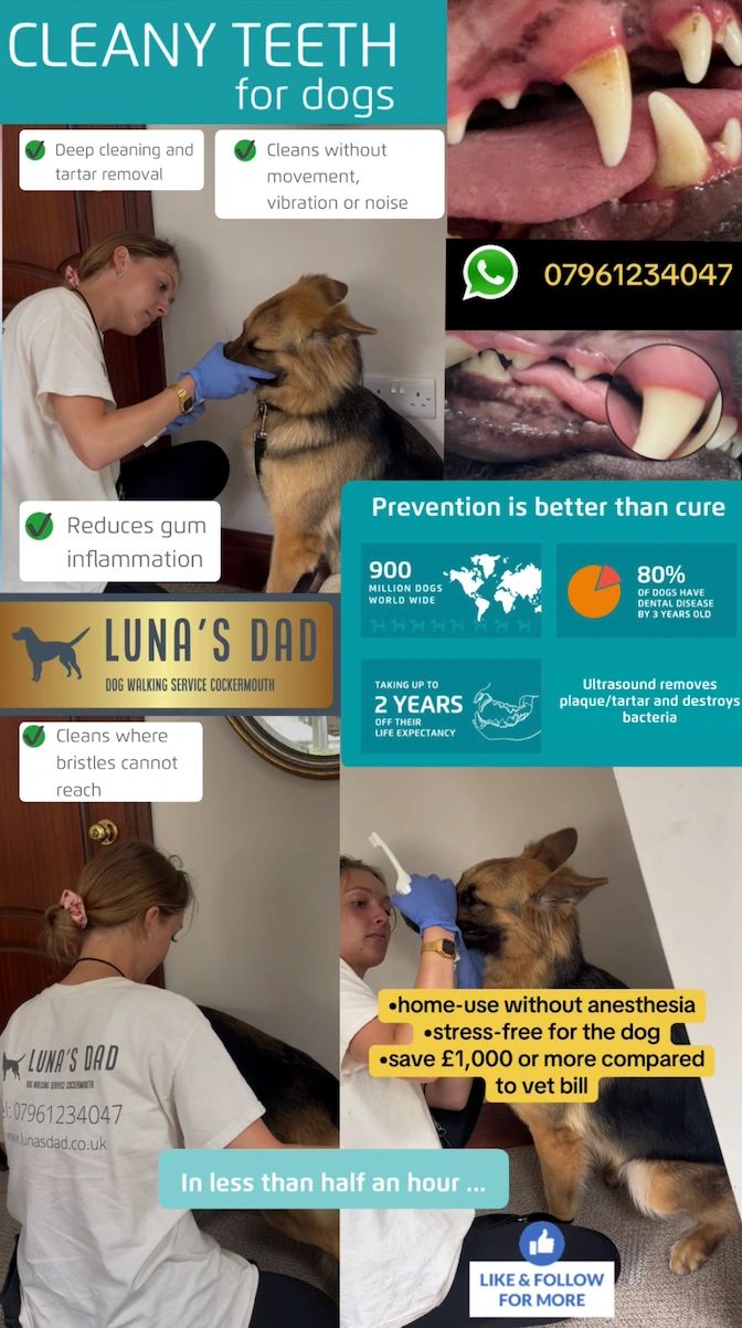 She’s been grooming dogs for 10 years, with a Level 3 Dog Grooming City & Guilds Diploma to show for it. She keeps our coats looking perfect, and she even cleans our teeth with her ultrasound kit—no risky anaesthetics needed! Abigail is DBS checked, fully insured, and trained in dog first aid, so we always feel safe, healthy, and loved. And me? I get all her attention, and her buddy Kylo gets the same—fun, care, and a whole lot of tail wags included.